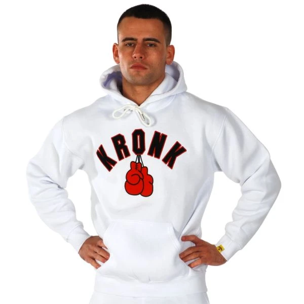 Kronk Gloves Applique Hoodie – Classic design made famous by the many celebrated and iconic boxers that have trained in the Kronk Gym. Made from 50% Cotton 50% Polyester. Featuring double fabric hood with self coloured cords, kangaroo pouch front pocket, ribbed cuffs and hem with twin needle stitch detailing.