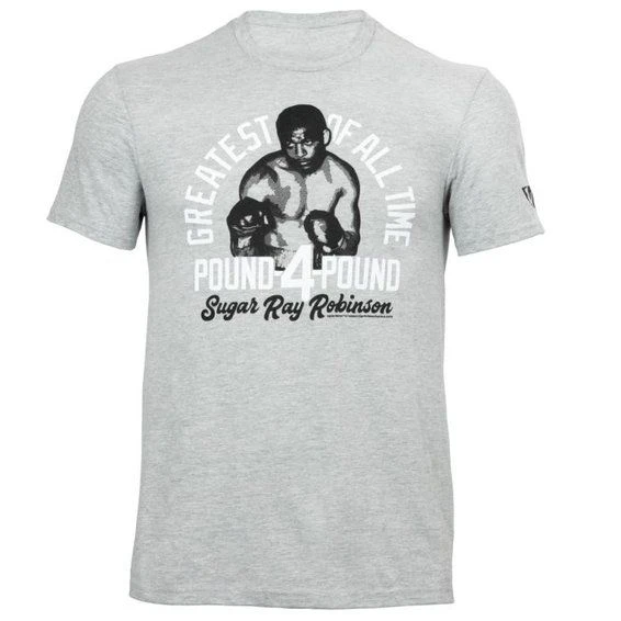 TITLE Boxing Legacy Sugar Ray Pound For Pound T-Shirt – “Sugar” Ray Robinson’s mix of technique and toughness has influenced every fighter that has followed in his footsteps. His presence allowed him to command unprecedented salaries and make unheard of demands for that time. He truly revolutionized what it meant for a fighter to have a voice in his career. Robinson left an indelible mark as a trend-setter as he continues to be an everlasting example of what being an athlete really means.