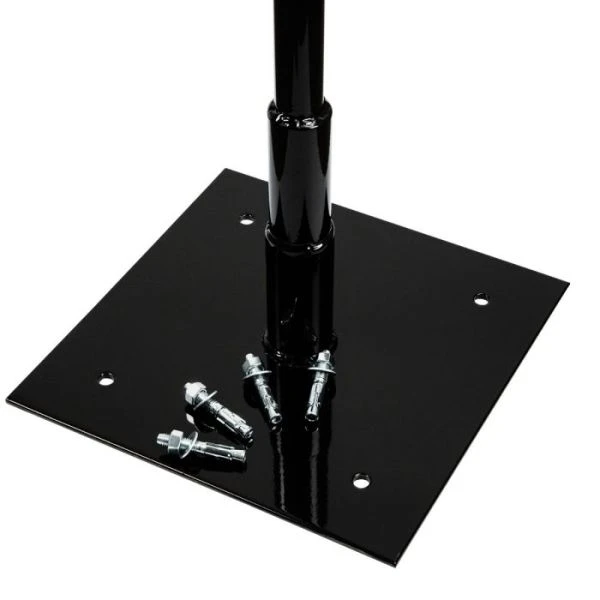 Includes four masonry floor anchors for permanent installation. Can also be weighted down with 2-4 45 lbs. Weight plates, not included.
